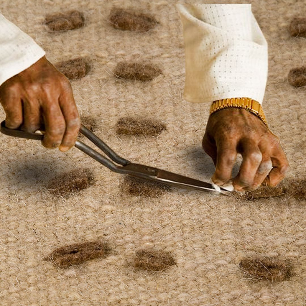 Clipping Clipping is the process of trimming the surface fibers of a rug to make it even and smooth. After weaving, the yarn may have uneven lengths, so careful clipping gives the rug a uniform look and soft texture. This step enhances the appearance and feel of the rug, making it ready for finishing and use.